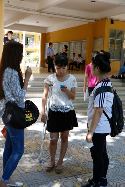 Lê Thị Giang thí sinh đến từ Chương Mỹ, Thanh Trì Hà Nội bị tai nạn phải mổ xương cẳng chân. Nhưng thí sinh này vẫn cố gắng đi thi dưới sự trợ giúp của bạn bè