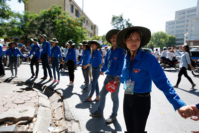Thanh niên tình nguyện Bách Khoa làm rào chắn giúp thí sinh có đường đi riêng