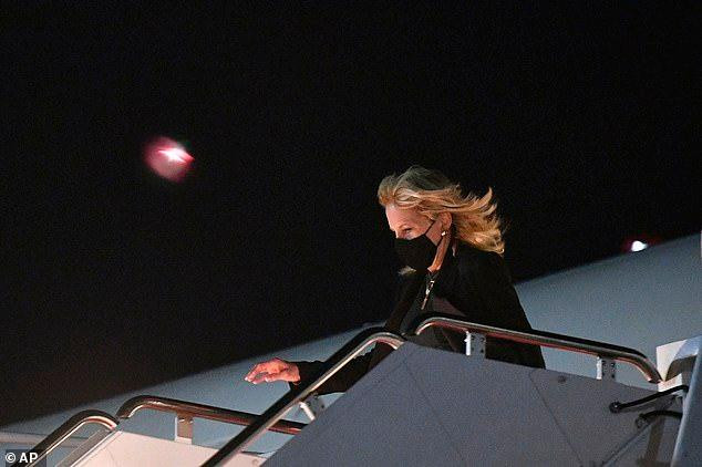 Một phụ tá Hải quân sau đó đã giúp bà Biden đóng cửa khoang hành lý.