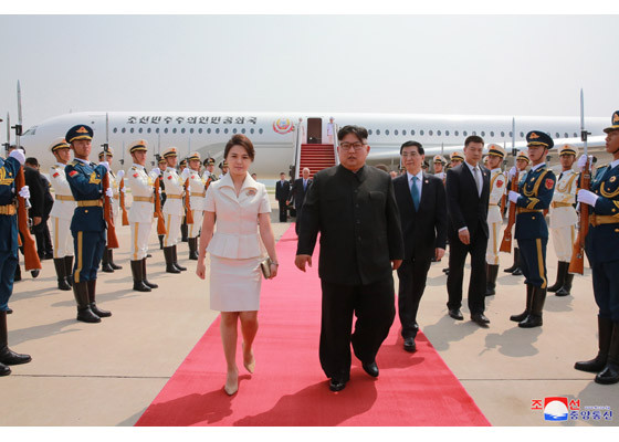Ngày 19/6, bà Ri Sol-ju cùng phu quân là nhà lãnh đạo Triều Tiên Kim Jong-un lên máy bay rời thủ đô Bình Nhưỡng, bắt đầu chuyến thăm Trung Quốc kéo dài 2 ngày 19 - 20/6. Ảnh: Rodong Sinmun