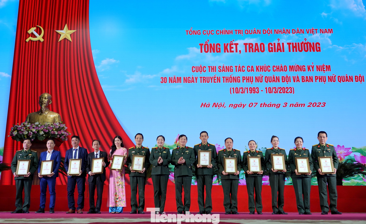 | Lãnh đạo Tổng cục Chính trị, Văn phòng Tổng cục Chính trị và Ban Phụ nữ Quân đội trao các giải Nhì, Ba, Khuyến khích cho các tác giả, nhóm tác giả |