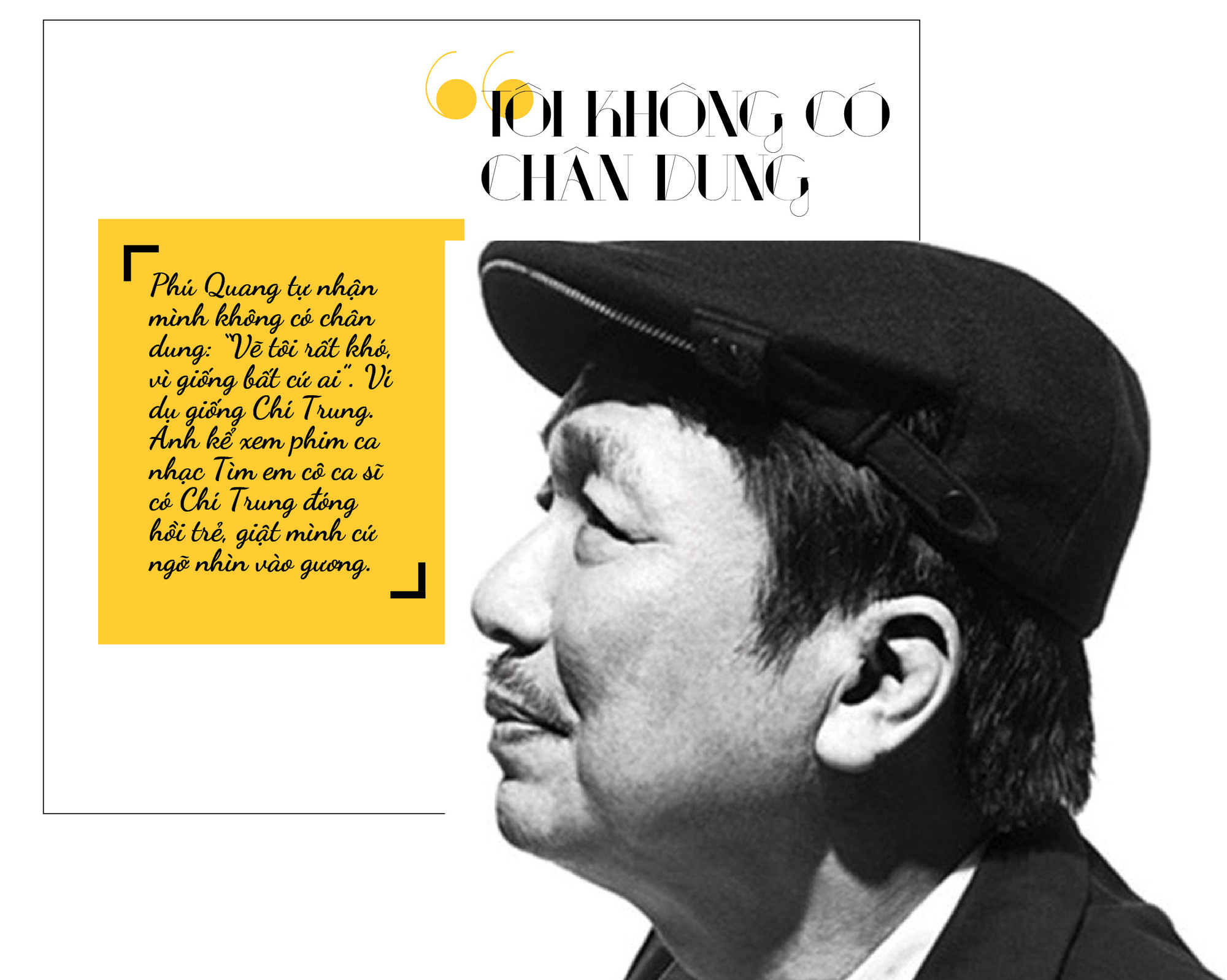 Là người thuộc trường phái yêu ai ghét ai thì sống để dạ chết mang đi, cho nên câu tôi hỏi về “cái bánh bóc ra cho thiên hạ xem” đương nhiên xóc óc. Nhưng không gai góc không phải Phú Quang- tôi biết thế nên chả bao giờ ngán ngại. Anh luôn thích những người nói thật sống thật, dị ứng sự đánh võng, làm trò. “Từ hồi trẻ đã không ai qua được mắt mình rồi. Thỉnh thoảng bảo mấy ông bà ca sĩ được khán giả mê mệt, rằng tôi cứ giả vờ bị các vị qua mặt, chứ dù tôi muốn đi nữa các vị qua sao nổi. Mình có tật là cái gì cũng biết”- anh vừa nói vừa cười.