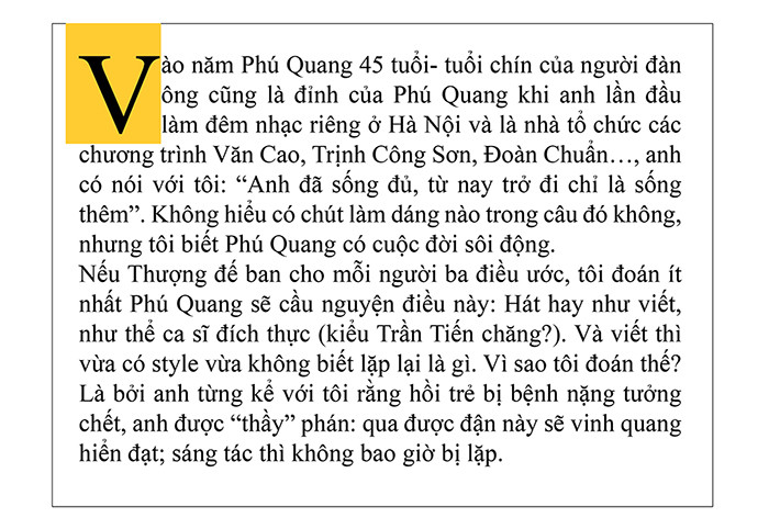 Cho nên bài báo nhiều hoài niệm này, viết vào thời khắc khó khăn của Phú Quang, hy vọng sẽ như tia nắng, tia sáng nguyện cầu phép màu cho anh qua đẹp tháng ngày này.