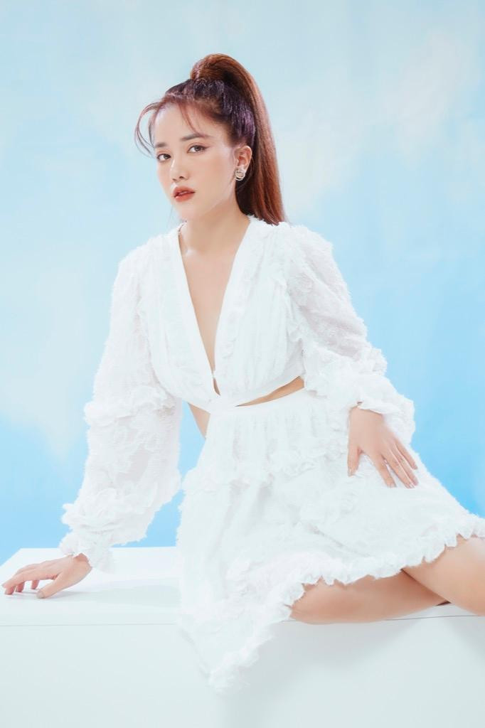 Tiếp tục với tạo hình trẻ trung, nhiều năng lượng, nhưng lần này Phùng Khánh Linh xuất hiện với phong cách thời trang mới mẻ hơn. Chủ nhân bản hit Hôm Nay Tôi Buồn ghi điểm cộng tuyệt đối khi khéo léo khoe đường eo với đầm trắng cut-out tinh tế.