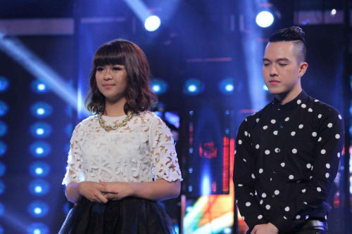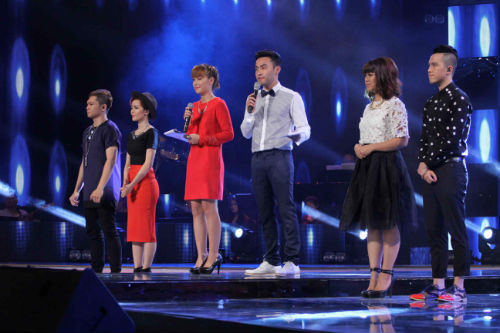 Liveshow trình diễn và công bố kết quả tuần tám Học viện Ngôi sao diễn ra tối 14/5. Hai thí sinh Gia Bảo và Kim Thành (từ trái qua) trình diễn để nhận ngôi sao lợi thế cho tuần tới trong khi Minh Châu và Thanh Ly (từ phải qua) phải chiến đấu để giành quyền đi tiếp.