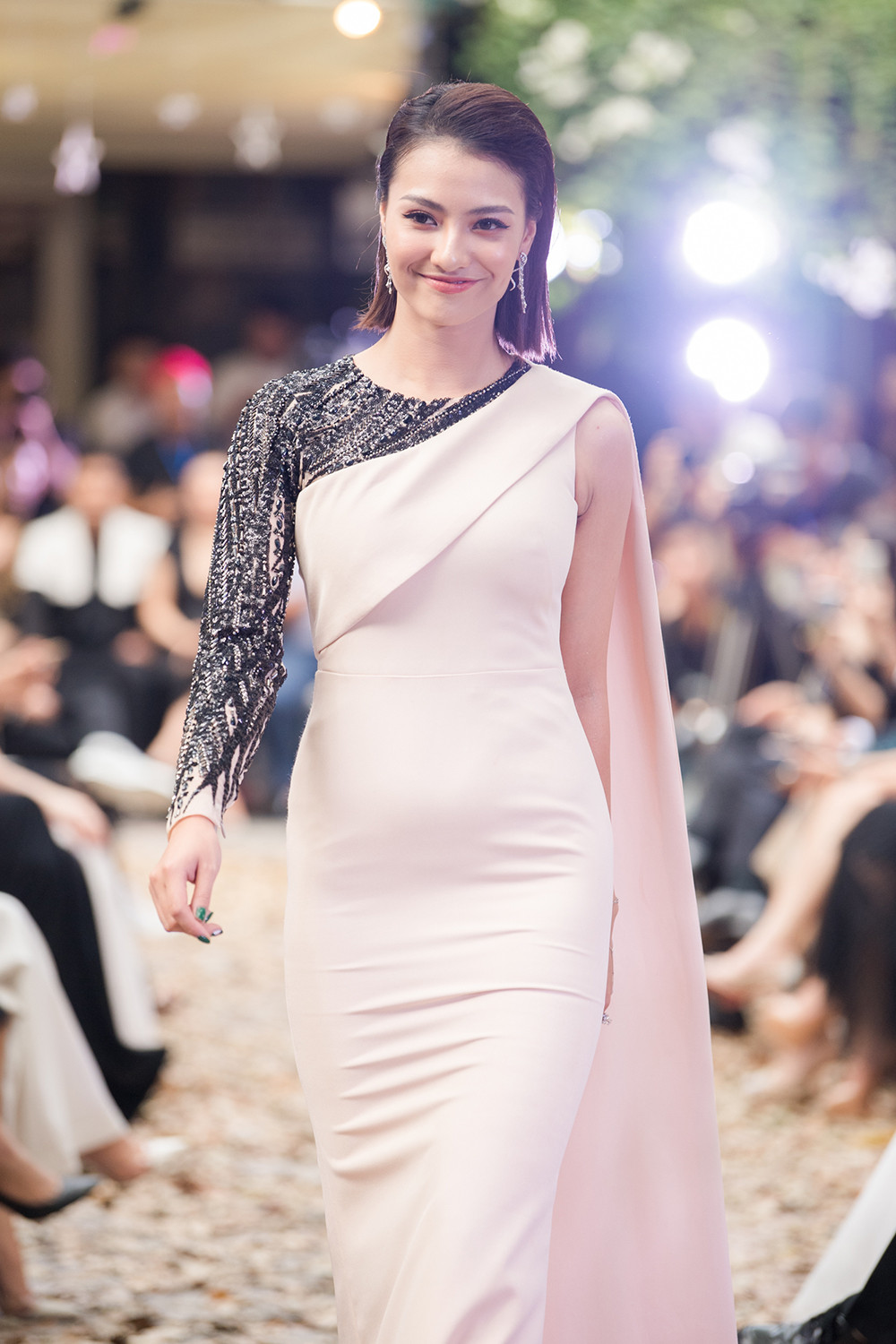 Đây là lần hiếm hoi cô trình diễn trên sàn diễn thời trang.