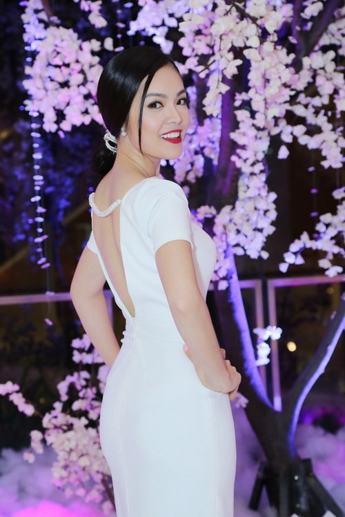 Nữ diễn viên khéo léo mặc chiếc váy trắng ôm sát cơ thể, khoe đường cong gợi cảm
