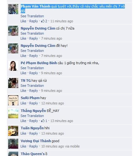 Bạn Phạm Văn Thành cho biết: “Quá tuyệt vời. Thầy cô này chắc yêu mến chị Bảy vô cùng”.