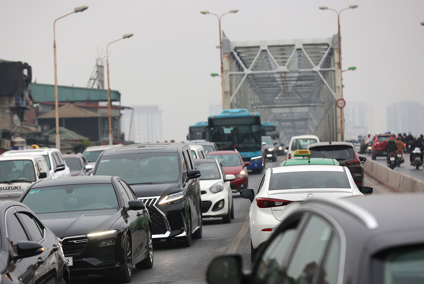 | Cầu Chương Dương ùn ứ phương tiện chiều hướng về trung tâm thành phố. |