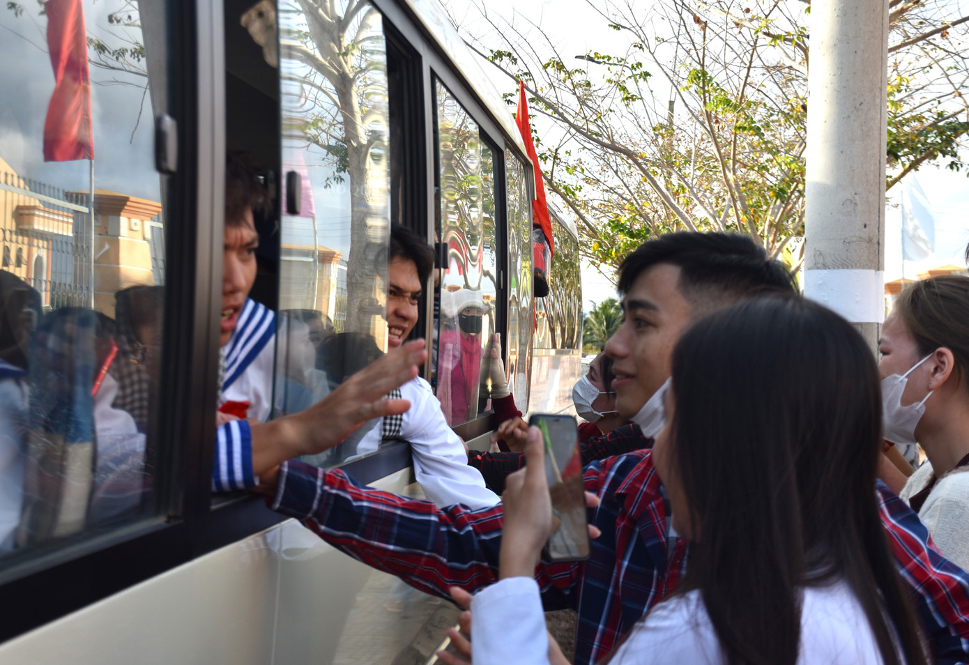 | Tân binh Đồng Tháp chào người thân, bạn bè lên đường tòng quân. |