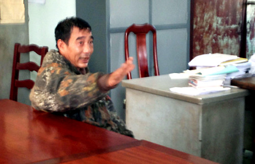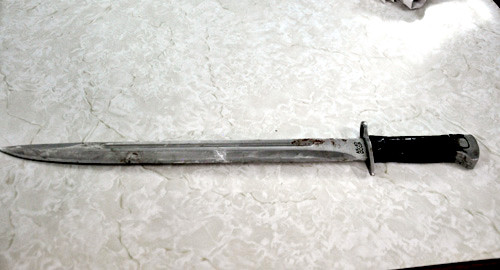 "Giờ mày đưa mã tấu cho tao được chưa, xuống đây đi rồi muốn gì thì nói", ông Sâm cúi nhặt con dao nhọn dưới nền nhà, vút ra ngoài cho đồng đội, khi chỉ còn cách Long khoảng 2 m.