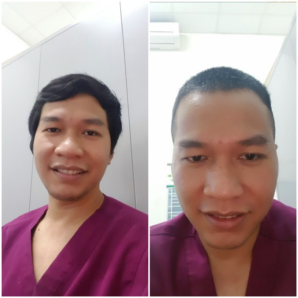 Hình ảnh trước và sau khi húi tóc của một nam bác sĩ bệnh viện