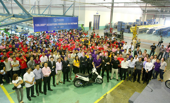 Hôm 15-7-2011, tập đoàn Piaggio đã chính thức xuất xưởng chiếc xe tay ga thứ 100.000 sản xuất tại nhà máy Piaggio Việt Nam tại tỉnh Vĩnh Phúc. Đây là sự kiện đánh dấu cột mốc quan trọng trong sự phát triển của Piaggio tại Việt Nam.