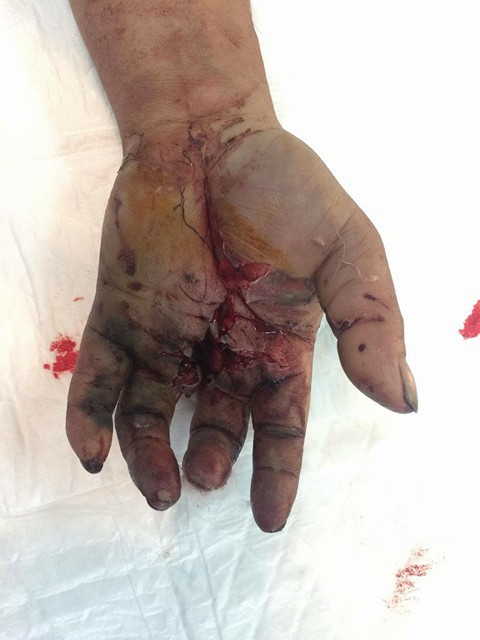 Hậu quả bàn tay trái của ông tê dại rồi đau rát, lòng bàn tay bị vỡ nát, mu bàn tay vỡ toác ra máu chảy nhiều. Sau đó ông tự lấy dây cao su băng tay cầm máu rồi gọi người nhà đưa đi Bệnh viện đa khoa tỉnh Hòa Bình.