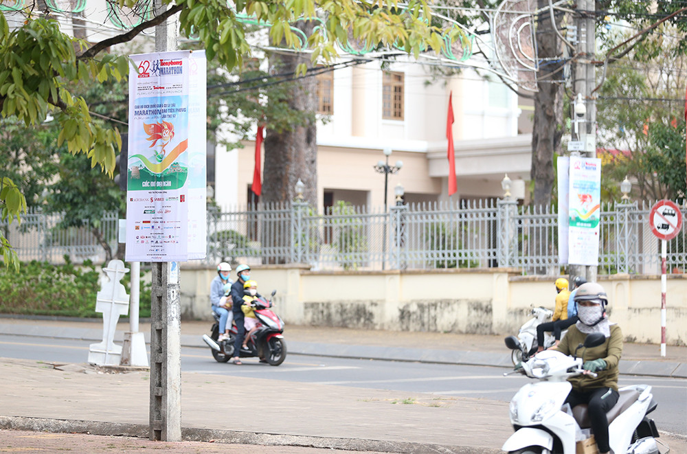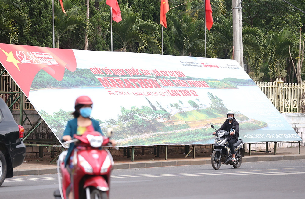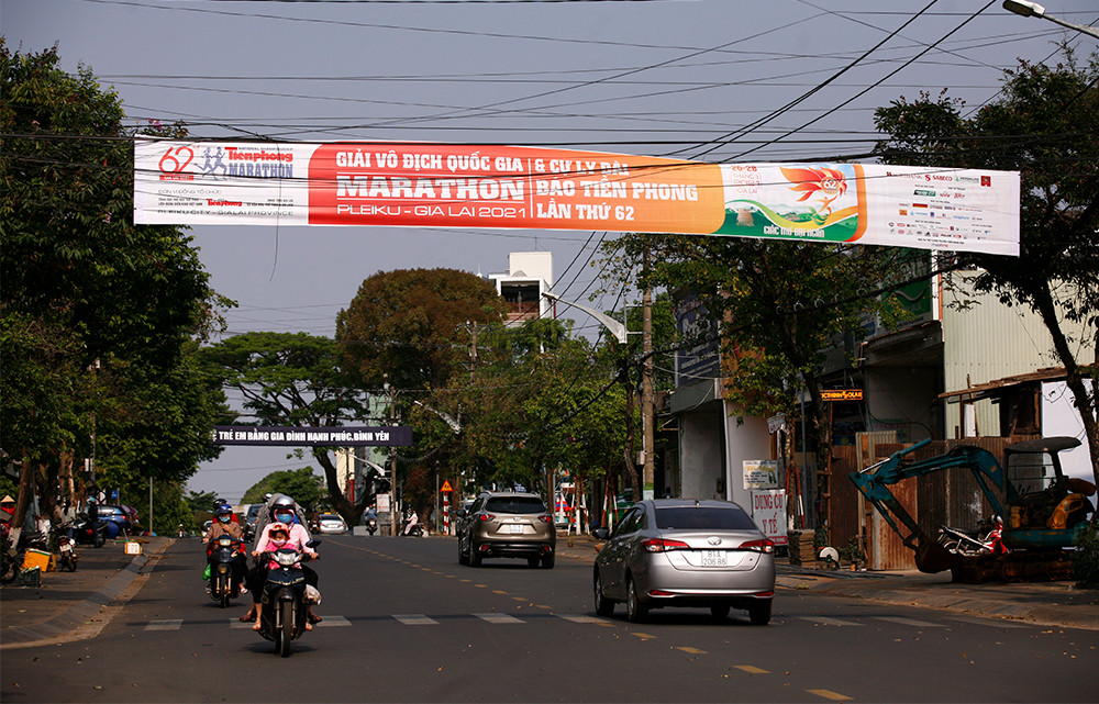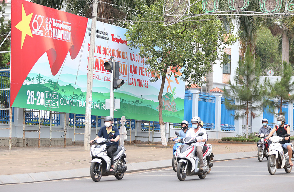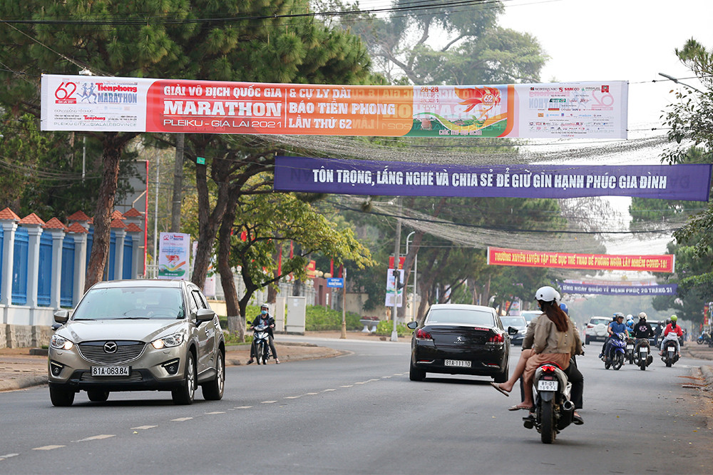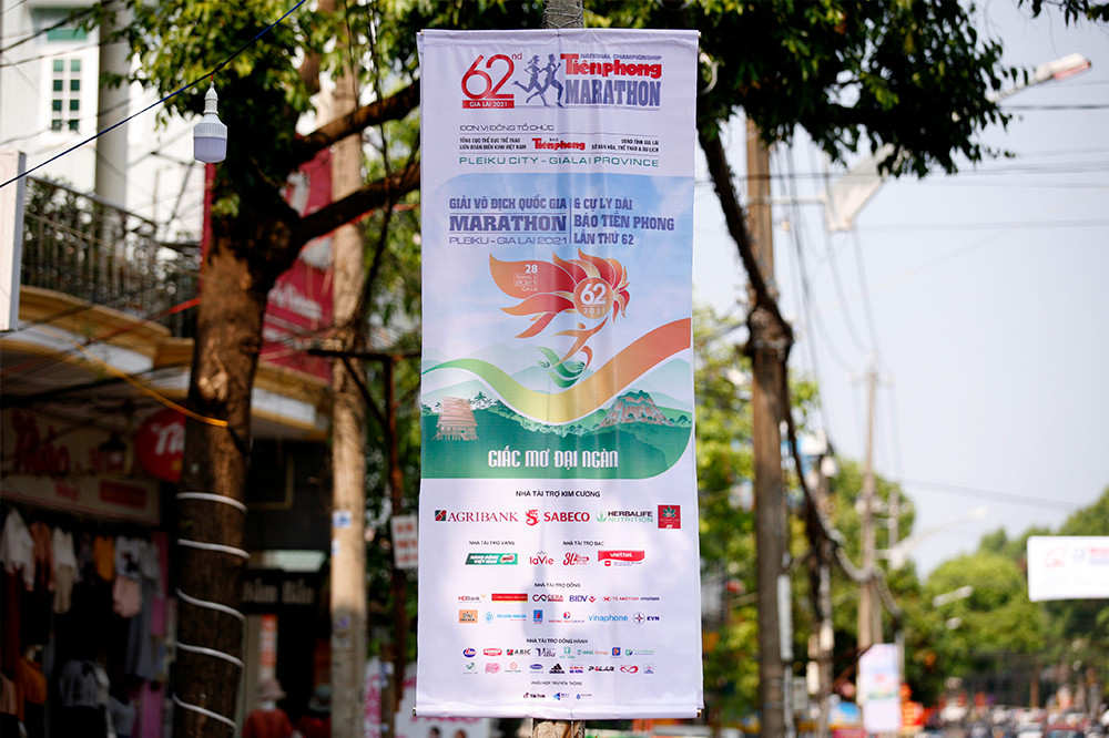 Đến sáng ngày 22/3, thành phố Pleiku (Gia Lai) đã rực rỡ sắc màu, băng rôn, biểu ngữ sẵn sàng cho giải.