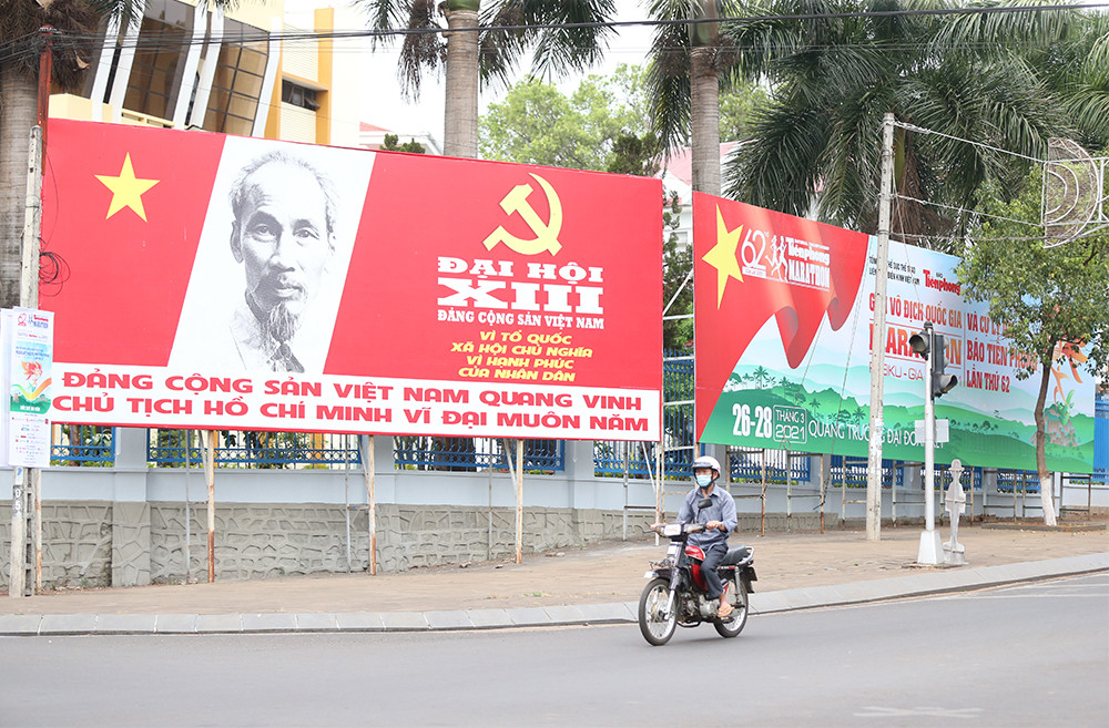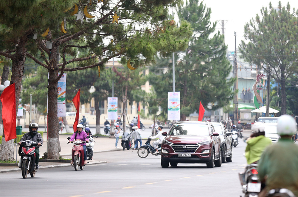 Các băng rôn, biểu ngữ được treo khắp mọi tuyến đường ở Pleiku, Gia Lai.
