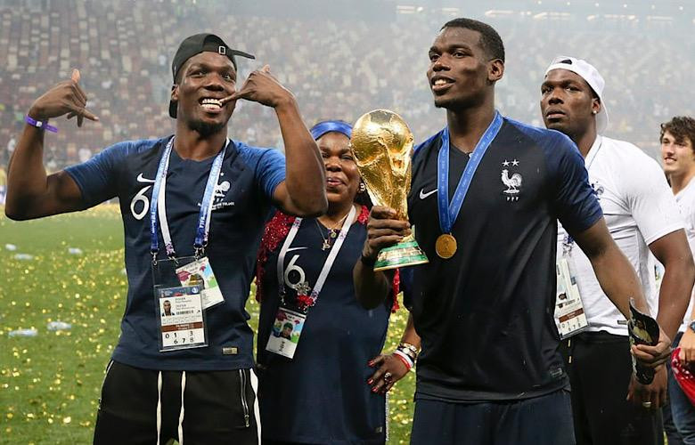 | Pogba cùng hai anh trai Florine (trái) và Mathias (phải) |