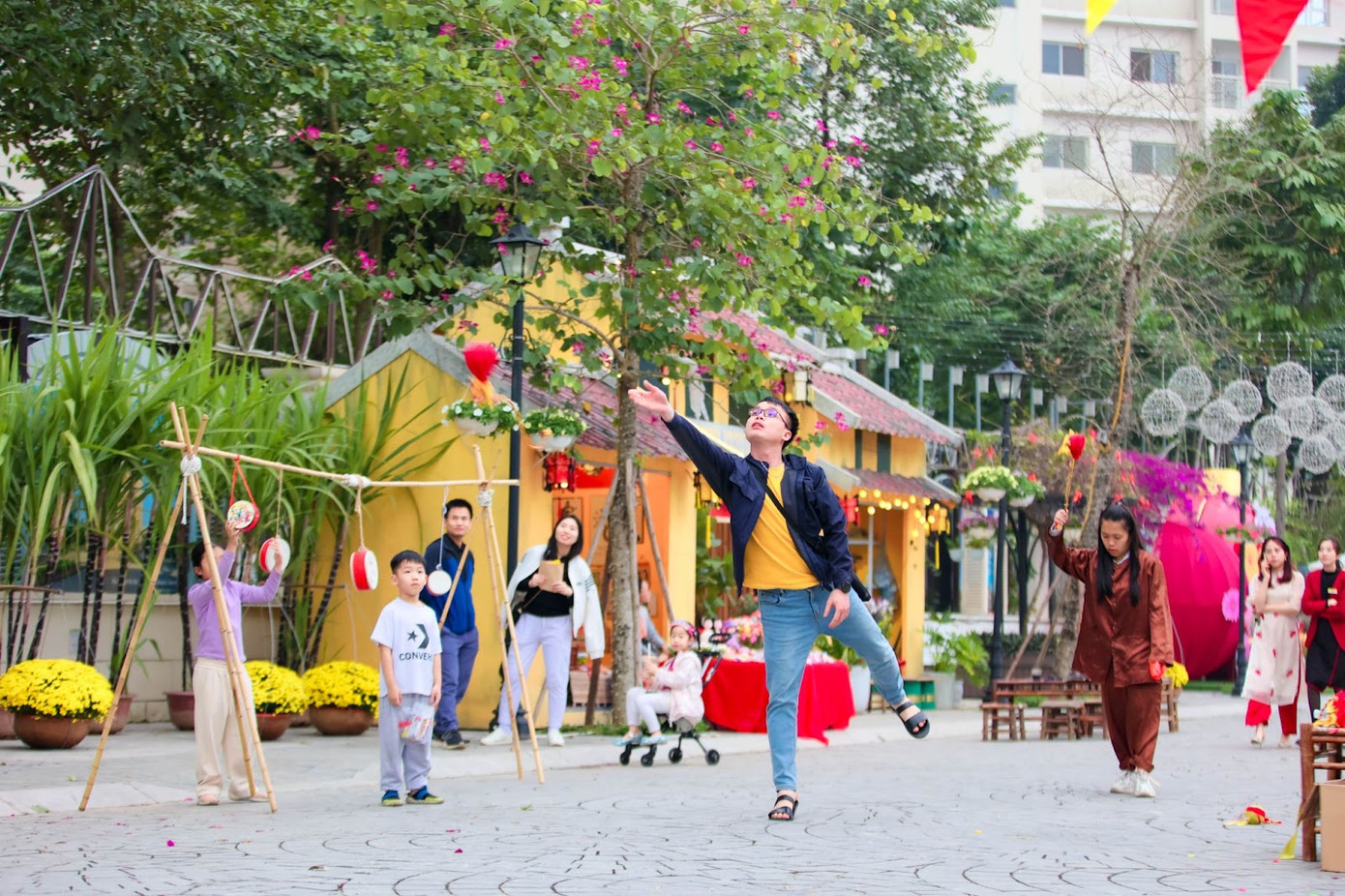 Ngoài ném còn, các cư dân và du khách nhí được trải nghiệm nhiều hoạt động, trò chơi truyền thống như: chơi ô ăn quan, ném ống bơ, đi cà kheo, bịt mắt đập niêu, nhảy dây…