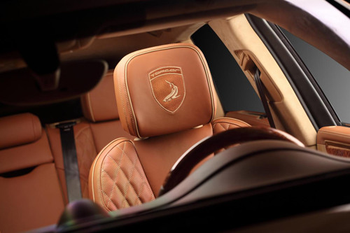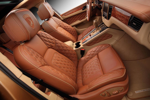 Màu vàng chủ đạo được Topcar đưa vào trong nội thất Macan với chất liệu da Nappa, gỗ óc chó tự nhiên và sợi carbon.