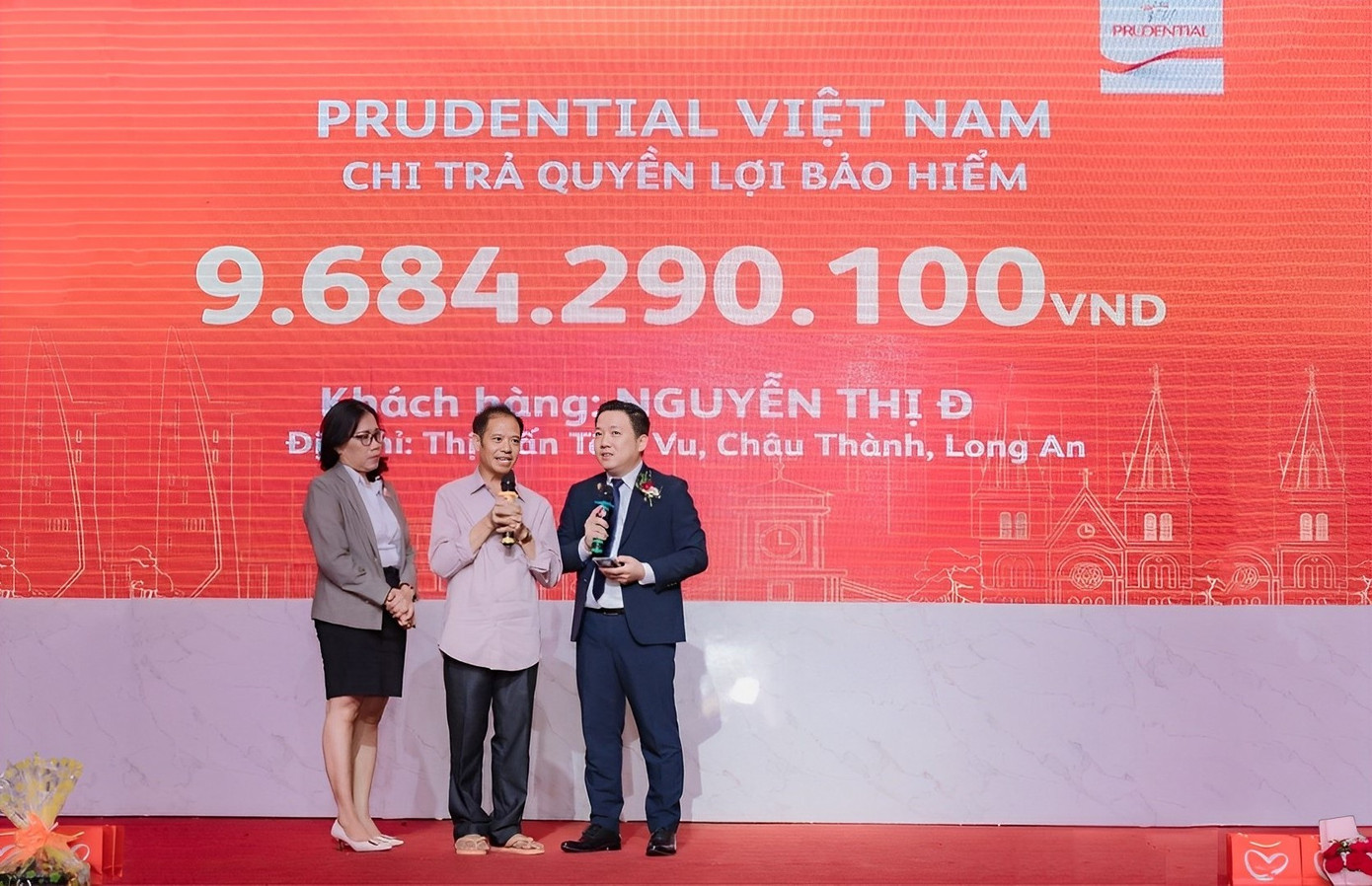 Tháng 06/2023, Chị Đ. không may mất đi sau một cơn bạo bệnh bất ngờ. Tư vấn viên cùng đại diện văn phòng Tổng Đại lý Tân An đã hỗ trợ khách hàng hoàn tất các thủ tục để Prudential tiến hành thẩm định và nhanh chóng chi trả quyền lợi bảo hiểm như cam kết với khách hàng. Theo đó, Prudential đã chi trả gần 9,7 tỷ đồng, gồm quyền lợi bảo hiểm và giá trị quỹ hợp đồng của sản phẩm bảo hiểm liên kết đơn vị Phú - Bảo Gia Thịnh Vượng và quyền lợi từ 3 hợp đồng khác.