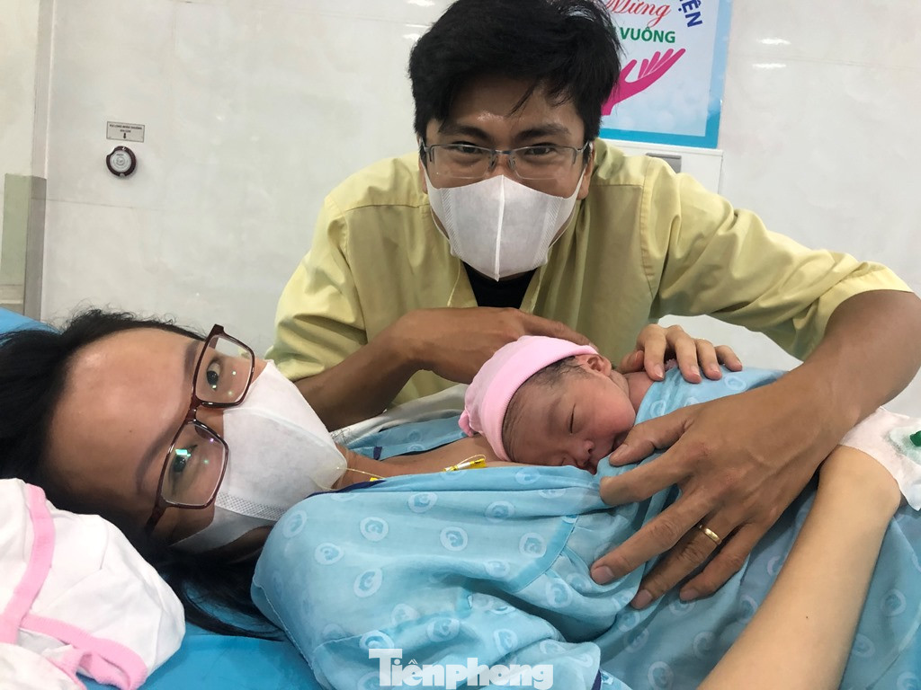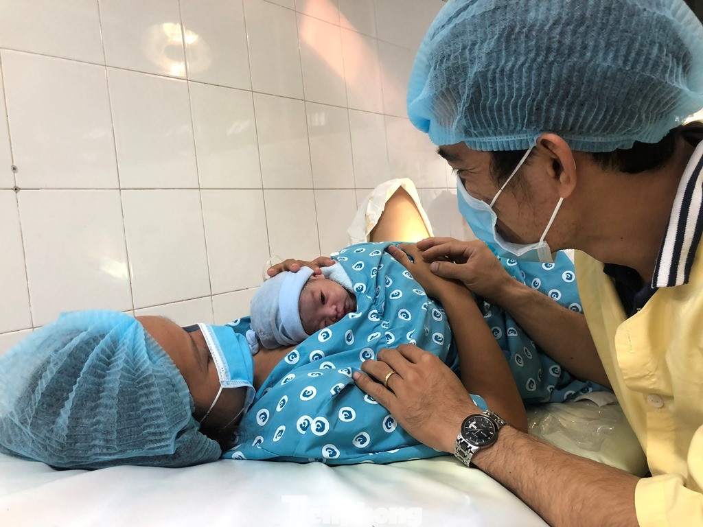 Đón con trai đầu lòng, anh Thái Minh Tâm (ngụ H.Bình Chánh, TPHCM) vẫn còn hồi hộp khi nhìn thiên thần nhỏ của mình. “Vợ nhập viện lúc 17h, đến tối sinh luôn lại đúng ngay giao thừa. Đây là món quà rất lớn cho gia đình chúng tôi” – anh Tâm hạnh phúc nói.