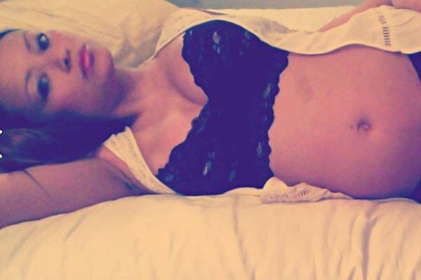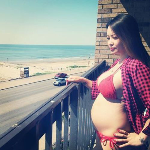 Tila Tequila (Tila Nguyễn) tạo dáng gợi cảm bên bể bơi ở Texas hôm 2/6. Người đẹp 32 tuổi đang mang bầu khoảng 6-7 tháng.
