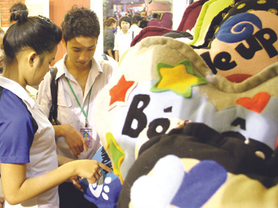| Nhiều bạn trẻ đến mua gối ôm Take One ở Hà Nội. Ảnh: Xuân Phú. |