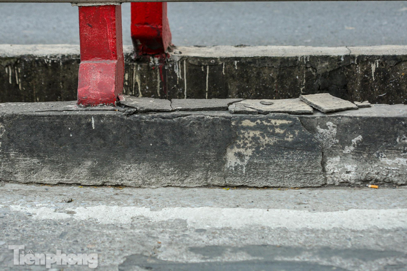 | Ghi nhận của PV, đi dọc cầu không khó để bắt gặp những hạng mục đã hư hỏng, xuống cấp; các lớp sơn trên thành cầu bong tróc, hoen rỉ... |