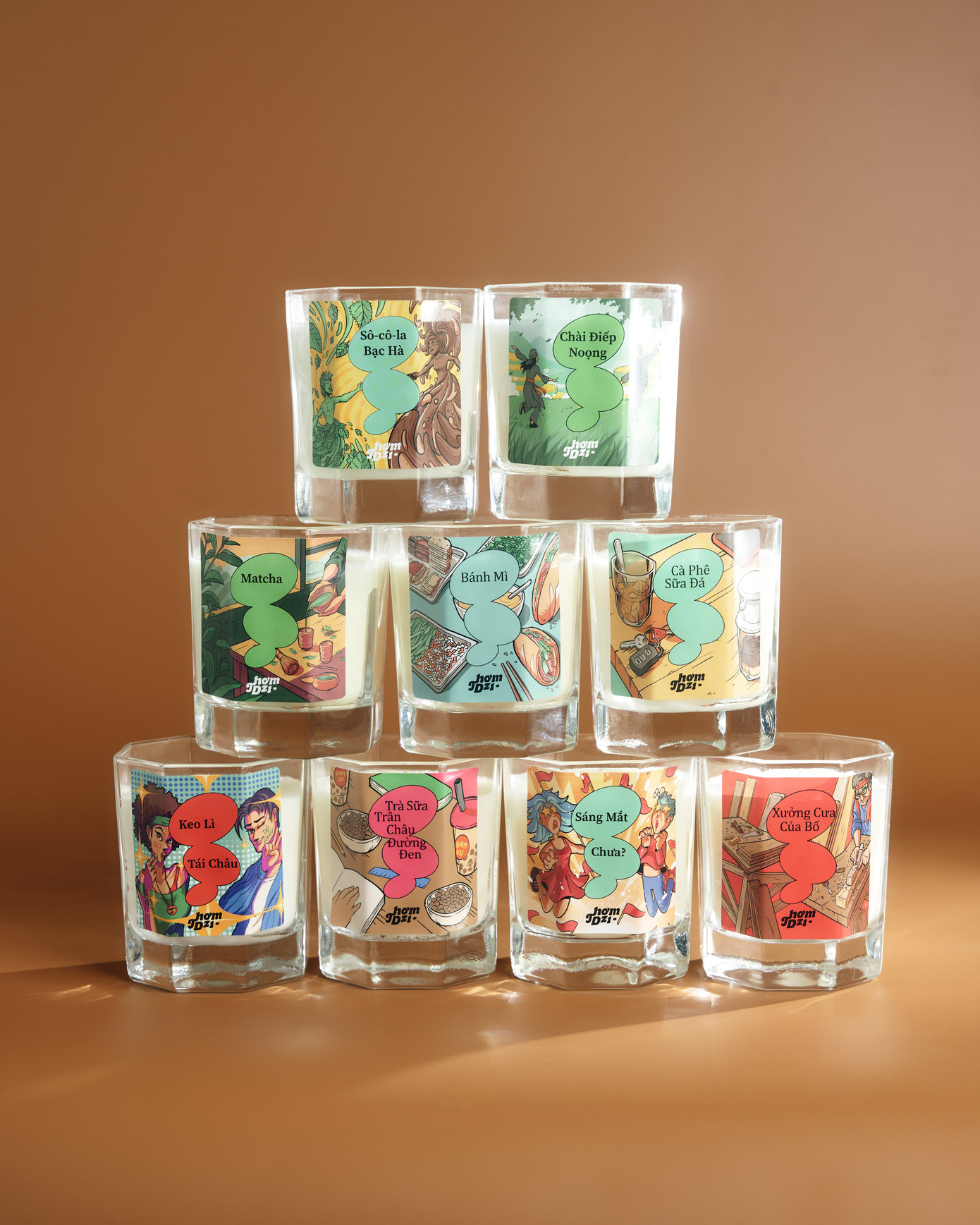Đón mùa lễ hội và tri ân bạn đọc, Thơm Dzị mang đến bộ sưu tập nến thơm với 9 mùi hương độc đáo: Cà Phê Sữa Đá, Bánh Mì, Trà Sữa Trân Châu Đường Đen, Xưởng Cưa Của Bố, Matcha, Sáng Mắt Chưa, Keo Lì Tái Châu, Sô cô la Bạc hà, Chài Điếp Noọng.