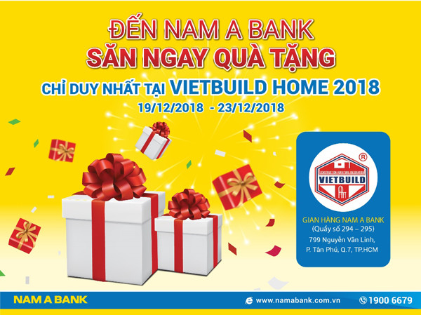 Hàng loạt ưu đãi hấp dẫn này chỉ duy nhất có tại Triển lãm Vietbuild Home 2018, địa chỉ Trung tâm Triển lãm & Hội chợ Sài Gòn – SECC 799 Nguyễn Văn Linh, P.Tân Phú, Q.7, TP.HCM. Khách hàng hãy đến gian hàng của Nam A Bank số 294-295 để được tư vấn các sản phẩm, dịch vụ và chương trình ưu đãi. Hotline: 1900 6679.