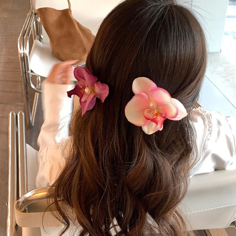 Ngoài phiên bản kẹp tóc hoa sứ thì kẹp tóc hoa lan cũng đang nổi lên trong cuộc đua ai là phụ kiện tóc hot hit Hè này.