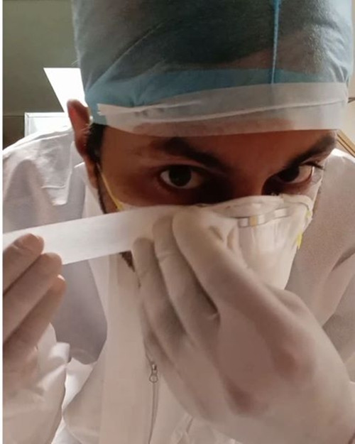 Vậy mà bác sĩ Aheed phải đeo khẩu trang, dán băng dính quanh khẩu trang, rồi đeo thêm khẩu trang phẫu thuật. Rồi đội mũ, dán băng dính ở viền mũ, sau đó kéo bộ đồ bảo hộ lên tận miệng và dùng băng dính dán vòng quanh để đường viền của mũ trùm bảo hộ cũng dính chặt vào mặt. Bác sĩ Aheed cũng phải đeo hai lớp găng tay chuyên dụng, dán băng dính ở đó, rồi cuối cùng là đeo tấm che mặt.
