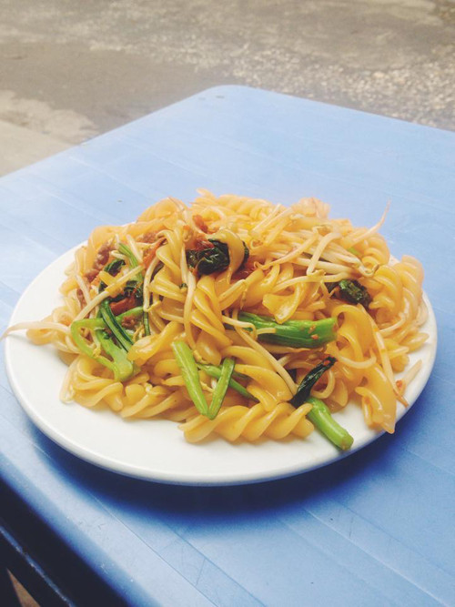 Nui xào bò là món ăn quen thuộc của nhiều người tại phố Đặng Văn Ngữ, đoạn gần trường Kim Liên.