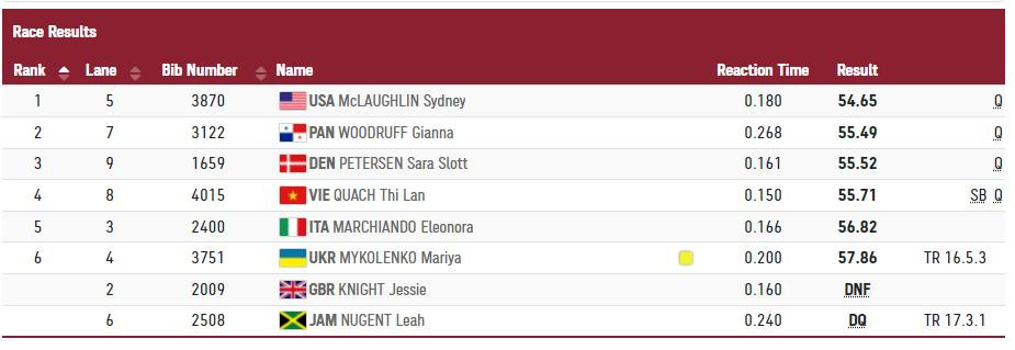 Quách Thị Lan tranh tài ở lượt chạy thứ 3 vòng loại 400m rào nữ Olympic Tokyo 2020. Trong lượt chạy của VĐV Việt Nam xuất hiện các tên tuổi đáng chú ý là Sydney McLaughlinm, người đang nắm giữ kỷ lục thế giới nội dung chạy 400m rào nữ với thành tích 51 giây 90.