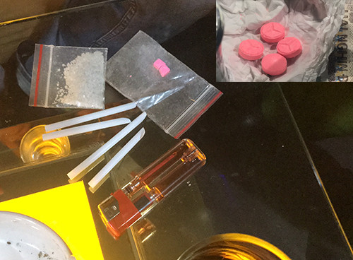 Tại khu vực bàn VIP, cảnh sát thu giữ nhiều túi tinh thể không màu, các viên nén... nghi là ma tuý vứt lăn lóc dưới gầm. Những thanh niên xăm trổ tỏ ra bình thản, cười đùa trên ghế sofa đều bị lục soát.