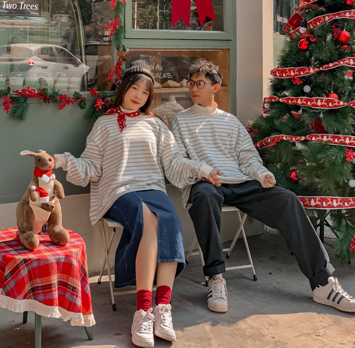 Các bạn trẻ chủ yếu chọn trang phục màu đỏ, màu trắng, xanh lá cây... là những sắc màu chủ đạo dịp Giáng sinh. Nhiều cặp yêu nhau thường sẽ mặc đồ đôi để thể hiện tình yêu trong ngày lễ ấm áp.