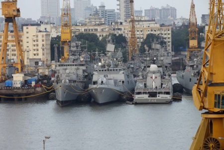 | Gần như toàn bộ các tàu chiến lớp Talwar hiện đại mà Ấn Độ đặt mua của Nga đều đỗ tại quân cảng Mumbai. |