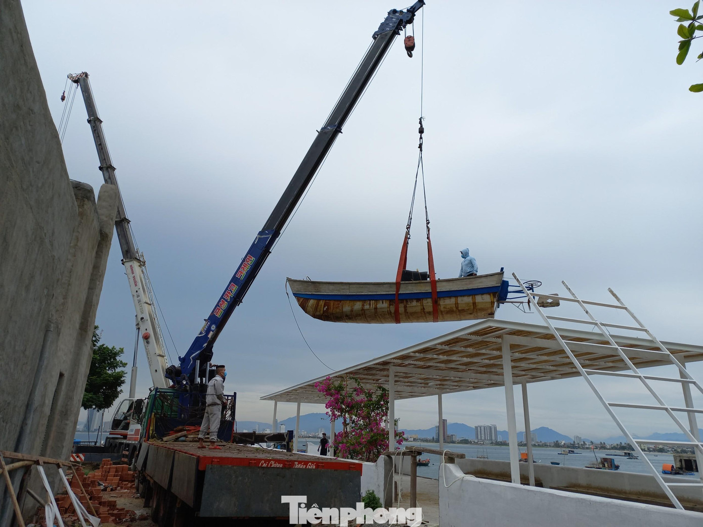 Tàu thuyền được các máy cẩu, cẩu lên bờ, chở đi vào sâu bên trong đất liền.