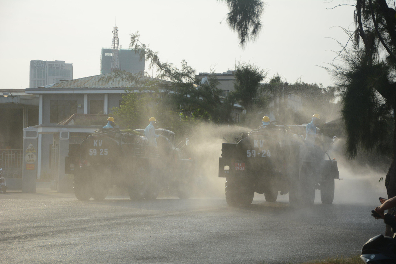 | Sáng 12/5, theo yêu cầu của ngành chức năng địa phương, lực lượng quân đội đã có mặt để tiến hành phun khử khuẩn tại khu công nghiệp An Đồn. Ngành y tế địa phương cho hay: trong số hàng chục trường hợp dương tính với SARS-CoV-2 mới được Đà Nẵng ghi nhận, có tới 32 ca làm chung tại Công ty CP Trường Minh (đường số 2, thuộc khu công nghiệp An Đồn, quận Sơn Trà) nơi có nữ nhân viên tổng đài nghi nhiễm COVID-19. |