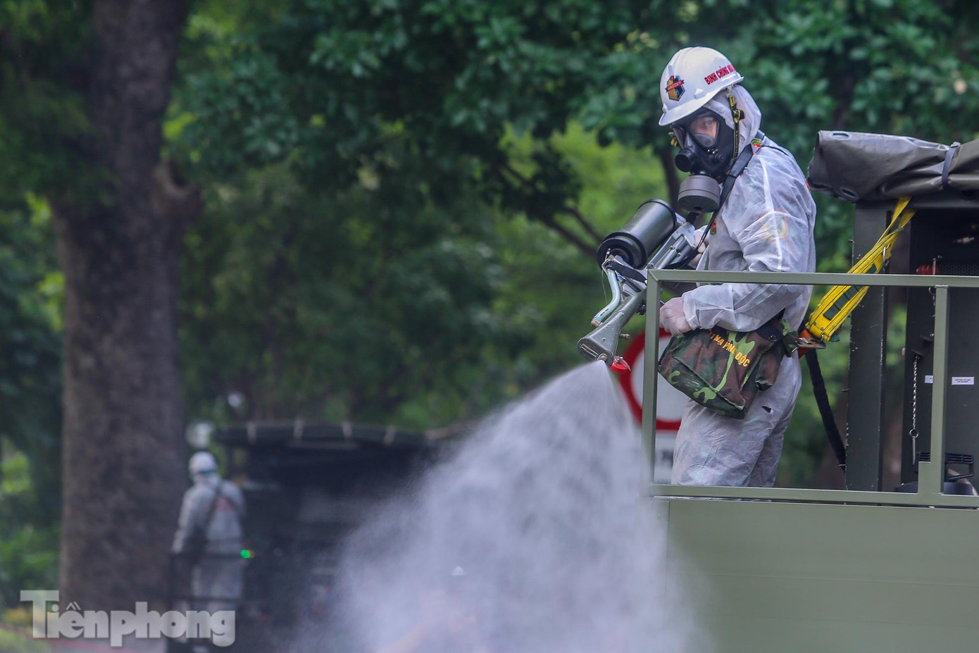 Ngoài quận Hoàn Kiếm, trong hôm nay, Bộ tư lệnh Thủ đô tiến hành phun khử khuẩn tại quận Đống Đa, Hoàng Mai và huyện Chương Mỹ.