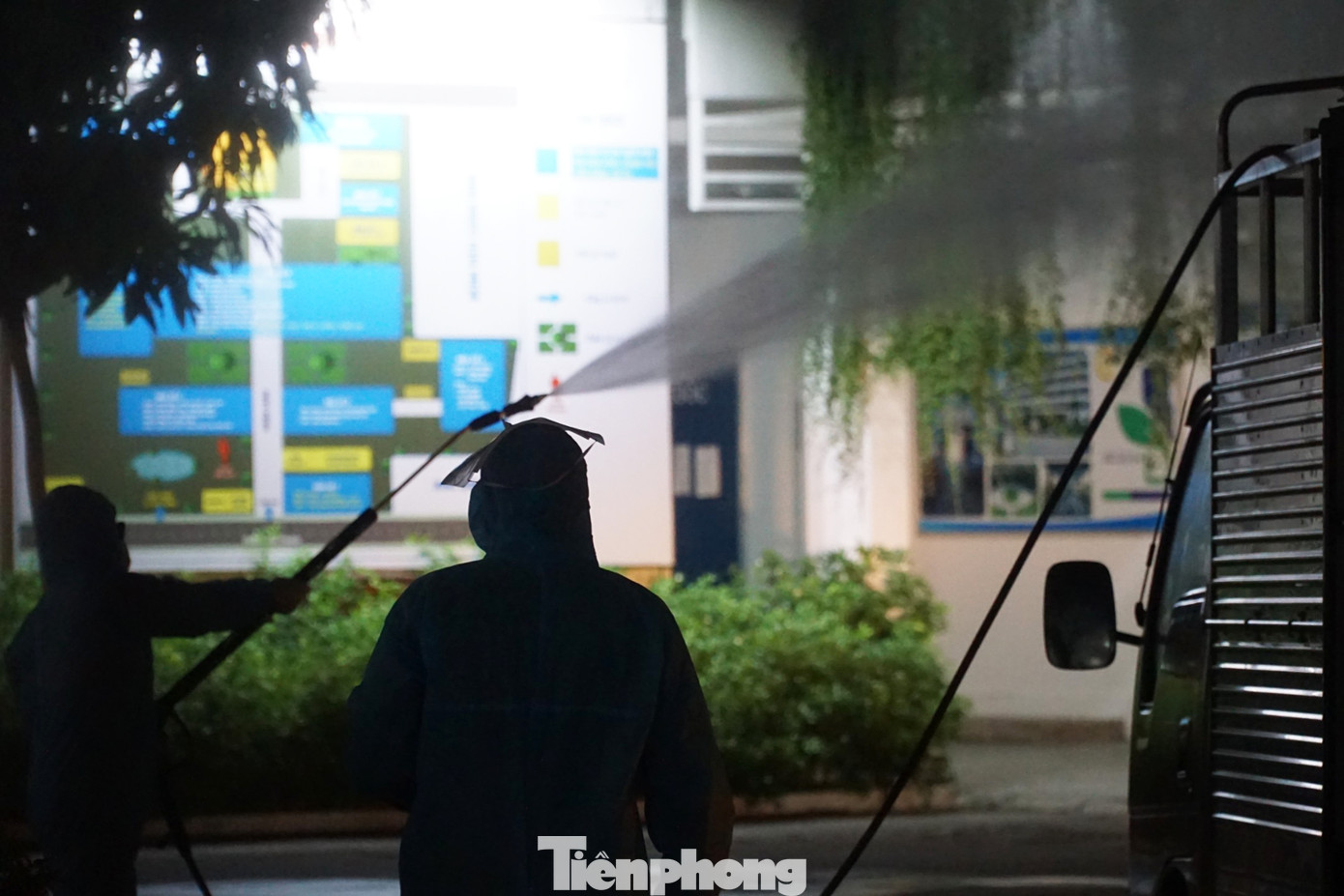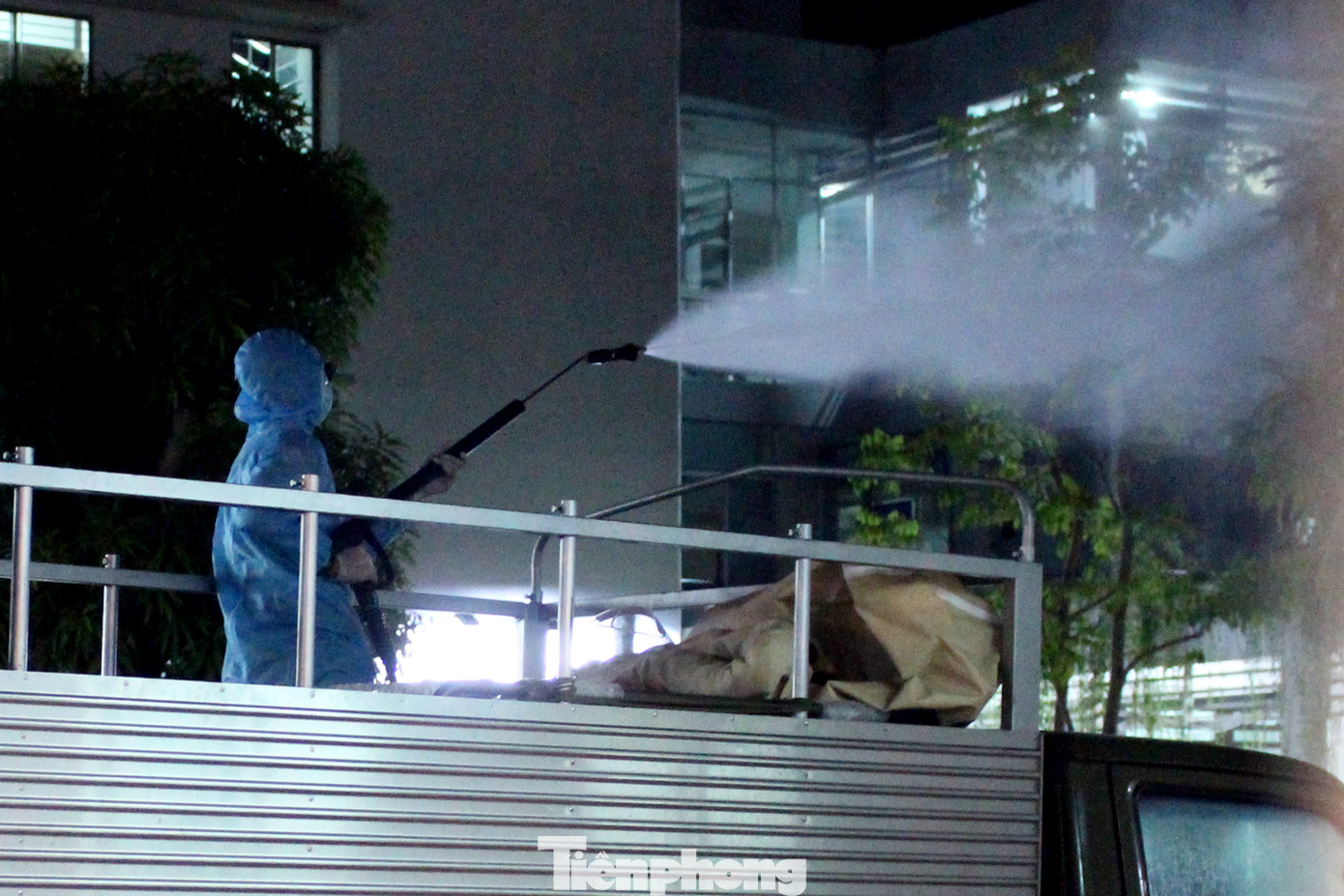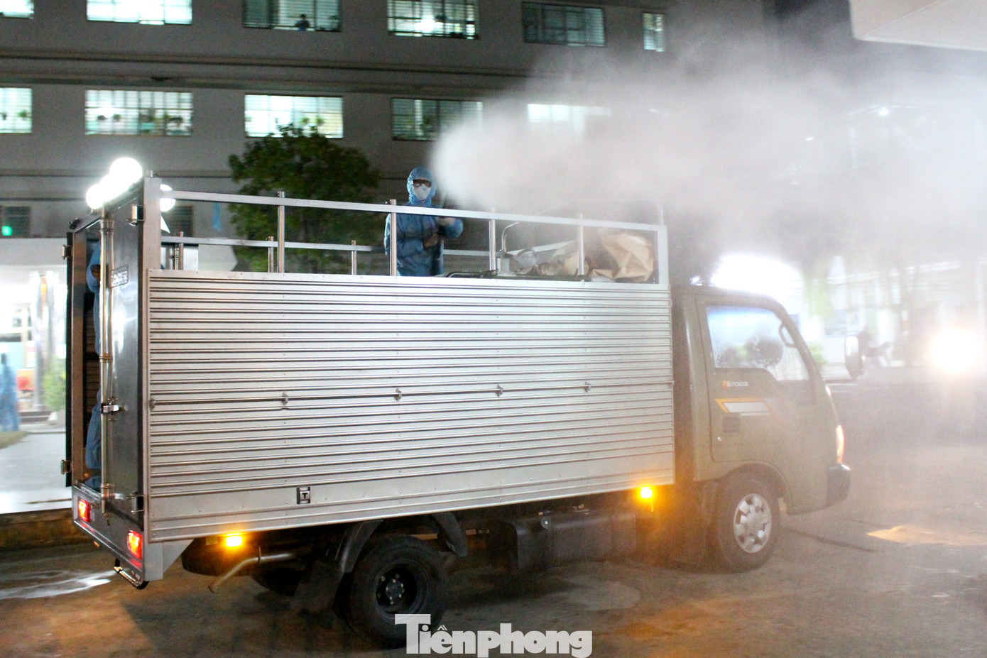 Quá trình phun khử trùng cả 2 bệnh viện diễn ra trong khoảng 2 tiếng đồng hồ. Ảnh: Giang Thanh