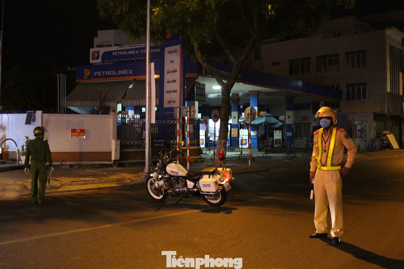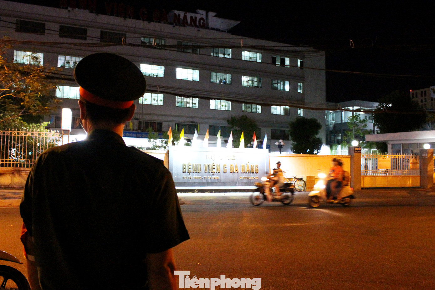 Hơn 20h tối 26/7, lực lượng cán bộ chiến sĩ Quân khu 5 đã tiến hành chốt chặn tại đường Hải Phòng và đường Quang Trung (quận Hải Châu, Đà Nẵng) - khu vực cổng của 2 bệnh viện bị phong tỏa là Bệnh viện C và Bệnh viện Đà Nẵng. Ảnh: Giang Thanh