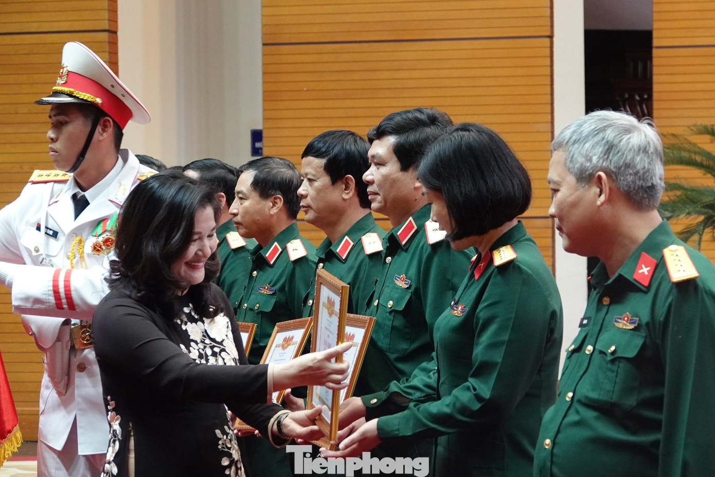 Bà Hà Thị Nga, Chủ tịch T.Ư Hội LHPN Việt Nam trao thưởng cho các tập thể, cá nhân điển hình 5 năm qua, tỷ lệ cán bộ nữ trong Quân đội tăng từ 2,43% (năm 2016) lên 2,97% (vượt chỉ tiêu xác định trong Kế hoạch hành động 0,47%); số lượng nguồn cán bộ nữ được quy hoạch là 164,41% so với số lượng chức danh quy hoạch; tỷ lệ nữ được kết nạp vào Đảng trung bình mỗi năm đạt 9,11%, tỷ lệ cán bộ nữ tham gia cấp ủy các cấp đạt 2,62%. Đến nay, 03/10 đơn vị trực thuộc Bộ (tổng số nữ trên tổng quân số đạt từ 30% trở lên) có cán bộ nữ giữ cương vị lãnh đạo, chỉ huy; 04 nữ sĩ quan được thăng quân hàm cấp tướng; 100% đơn vị trực thuộc Bộ Quốc phòng có đại diện phụ nữ tham gia các hội đồng tư vấn, các đoàn kiểm tra về những vấn đề có liên quan đến phụ nữ và trẻ em. Phụ nữ Quân đội ngày càng có nhiều đóng góp thiết thực trong tham gia lực lượng Gìn giữ hòa bình của Liên hợp quốc và đạt các giải thưởng cao cấp quốc gia, khu vực, quốc tế.