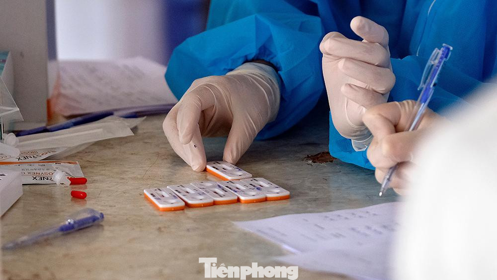 Trong buổi chiều nay, có hàng chục điểm rải khắp khu vực dân cư trong phường Văn Chương tổ chức xét nghiệm nhanh cho người dân sống trên địa bàn phường.