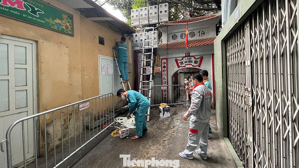 Để nắm tình hình người dân trong khu vực phong tỏa, chính quyền phường còn lắp đặt 8 mắt camera trong ngõ Trung Tả, ngõ Hồ Văn Chương, việc này cũng được tiến hành ngay từ ngày 15/9.