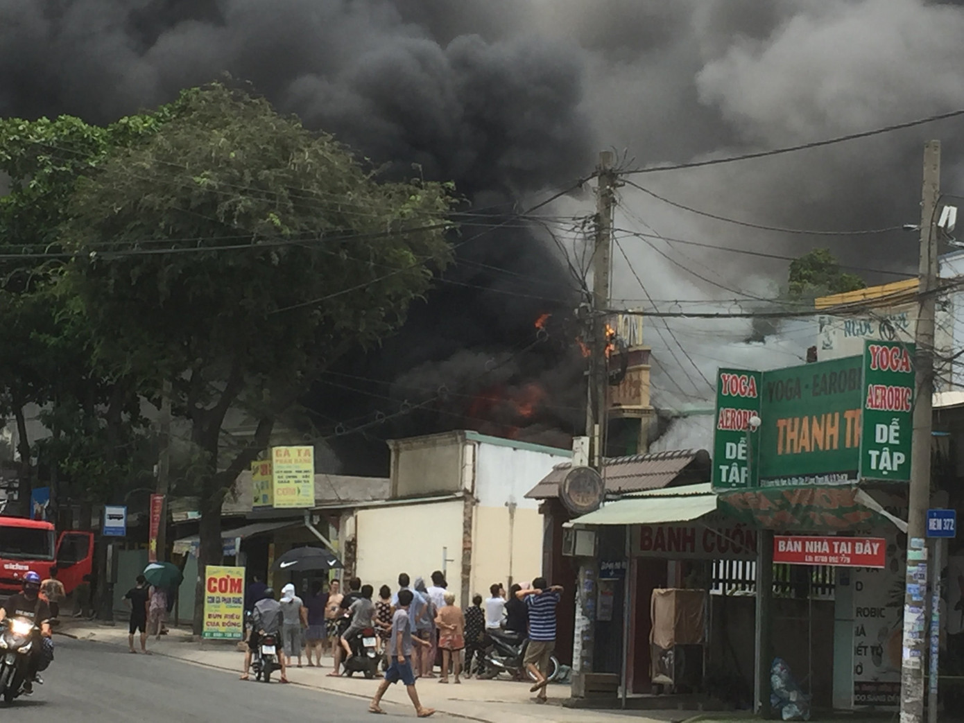 Chỉ trong ít phút, ngọn lửa bùng cháy dữ dội bao trùm toàn bộ quán karaoke. Nhiều người dân xung quanh tìm cách dập lửa nhưng bất thành nên vội di dời tài sản trong các căn nhà xung quanh tháo chạy vì sợ cháy lan.