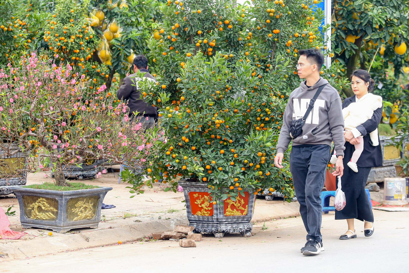 | Ai nấy đều chăm chú chọn lựa để mua được những cành đào, cây quất, cây mai… kiểu dáng đẹp chơi vào dịp Tết Giáp Thìn. |