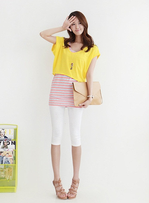 Vào mùa hè, quần legging lửng sẽ mang lại cho bạn sự mát mẻ cũng như năng động, đặc biệt khi kết hợp với áo pull dáng rộng.