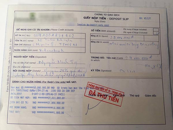 Kèm theo những chia sẻ về nguyên nhân hủy show, quản lý Noo Phước Thịnh còn đăng tải hóa đơn chuyển tiền trước 20% cát sê, tương ứng với số tiền 27 triệu đồng. Như vậy, Noo Phước Thịnh được trả 135 triệu đồng để có mặt trong show MBC Music K-Plus.