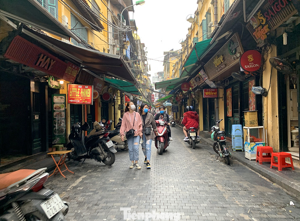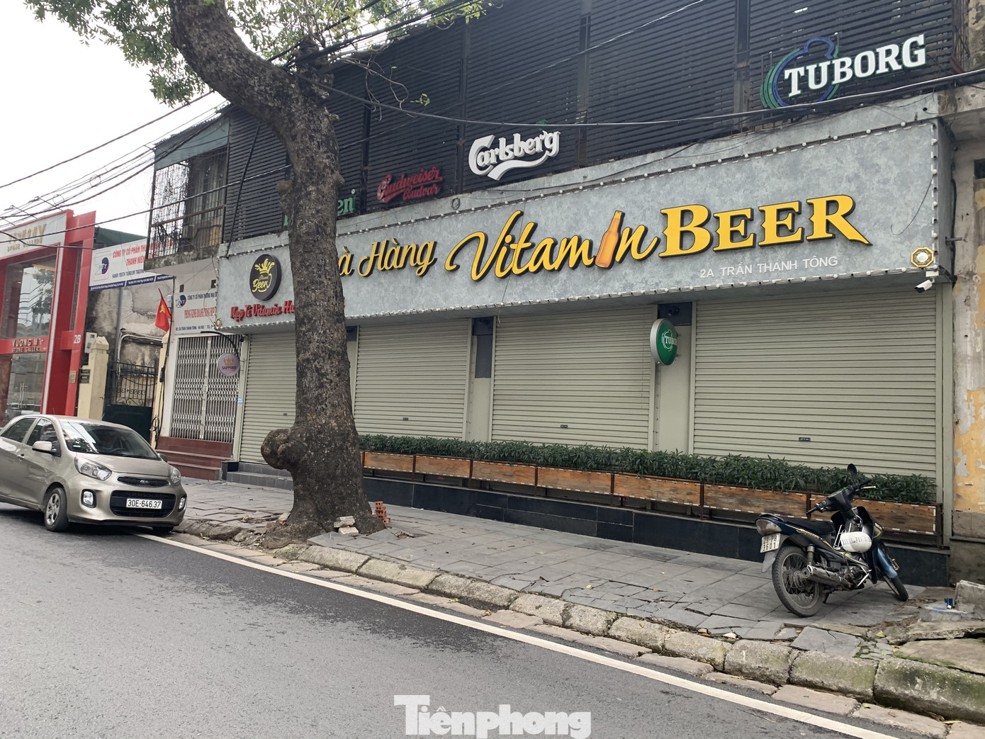 Phố bia Tạ Hiện vắng vẻ. Vì khách du lịch không lui tới nên nhiều chủ cửa hàng tạm ngừng kinh doanh.